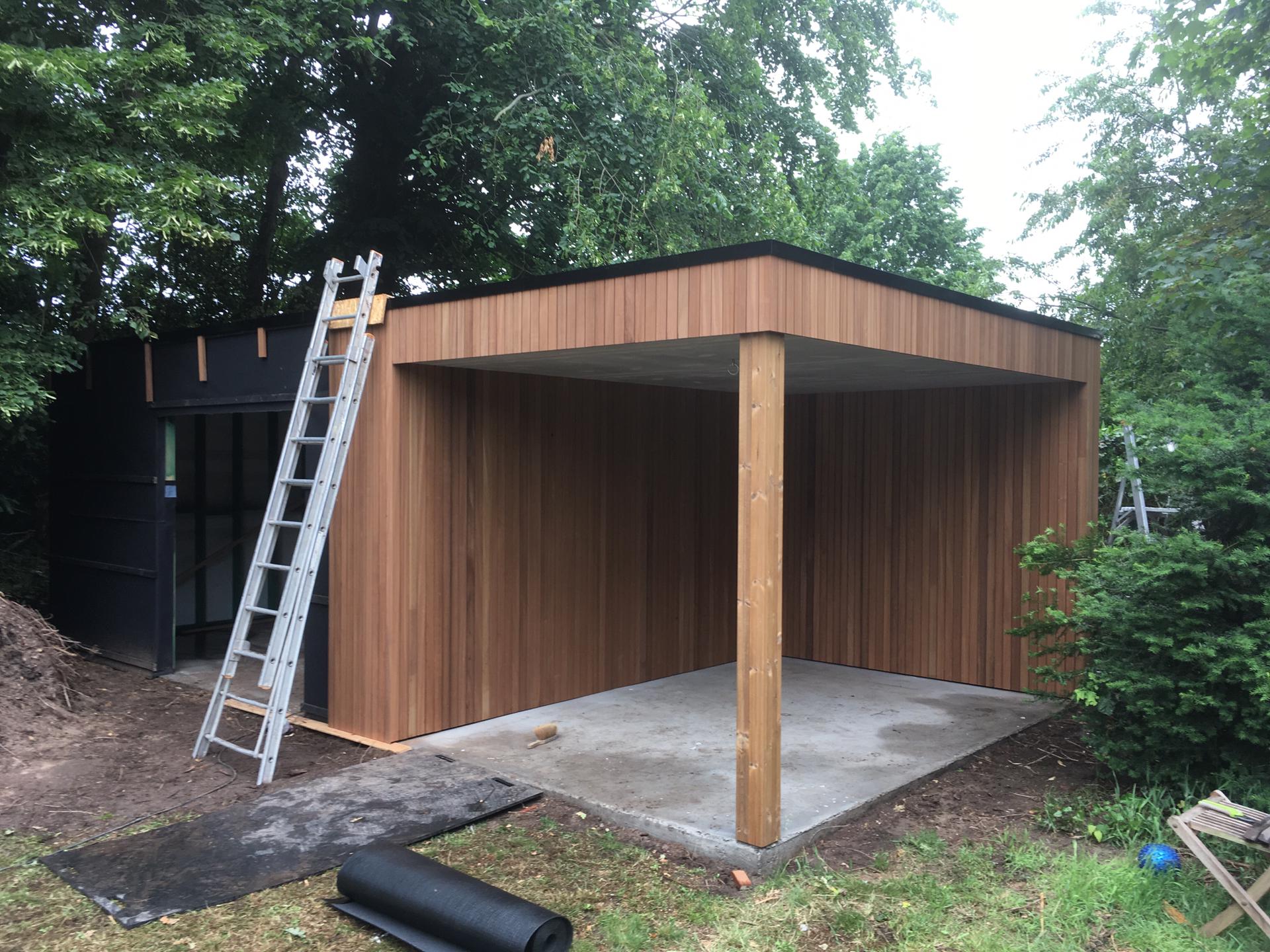 Houten bijgebouw in Thermowood Ayous
